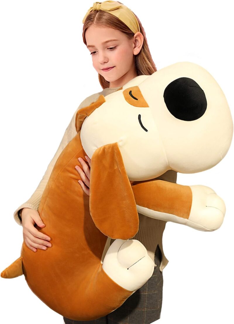 • DOG BODY PILLOW: Huge size 29.5inch, well done, this huggable, squeezable stuffed dog features big ears, cute nose and velvety shell, surely a soft and cozy oversized plush pal.